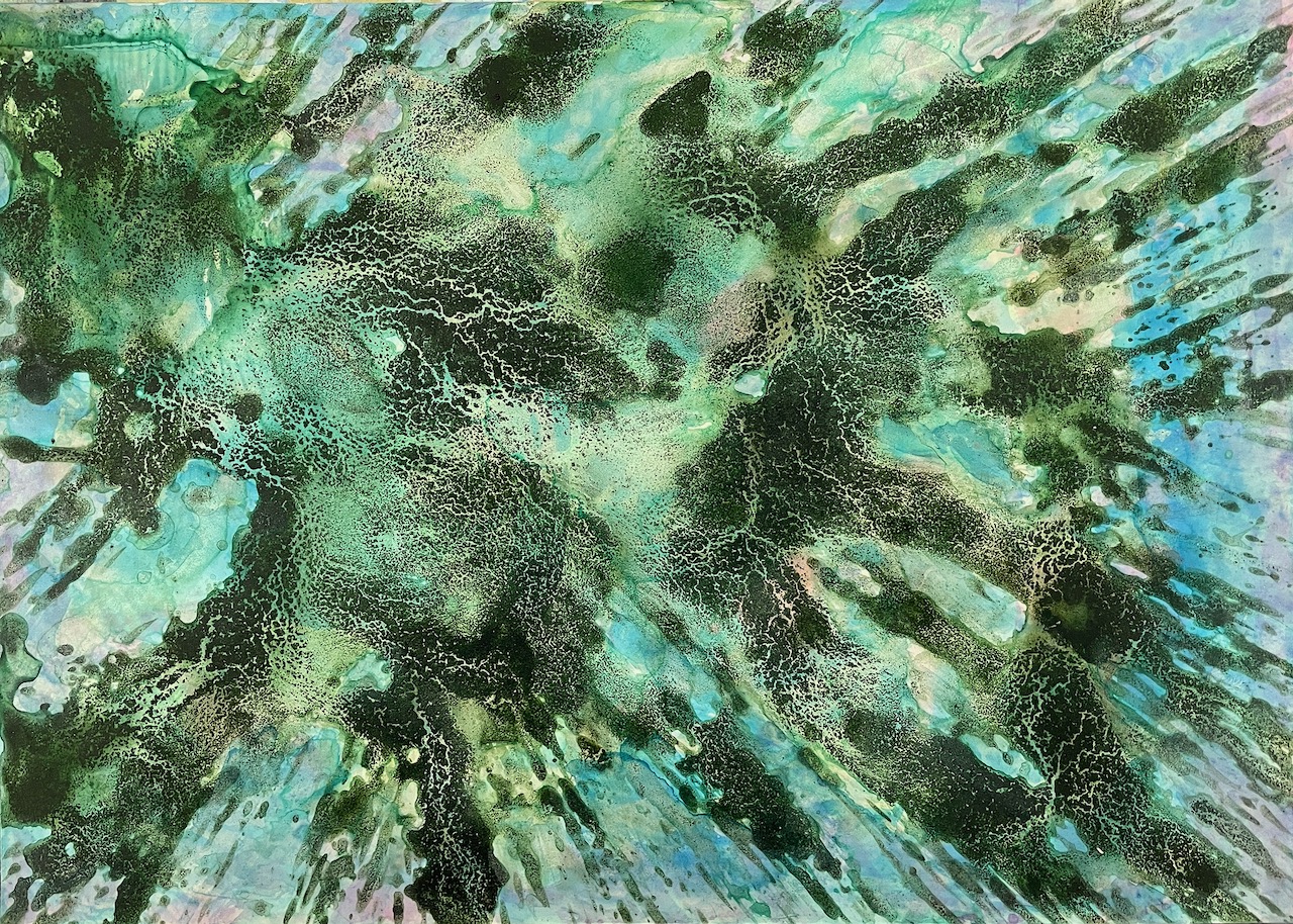 Alberto Di Fabio is taking inspiration from the world of natural sciences such as biology, chemistry and astronomy. His painting explores atoms, cell structures, neurons, DNA chains, constellations and galaxies giving life to shapes – often geometrical – in bright, pure colors that spin and vibrate all over his canvases, creating contrasts and harmonious scales, tonal variations and amazing juxtapositions, involving the observer in extrasensory kinetic experiences.