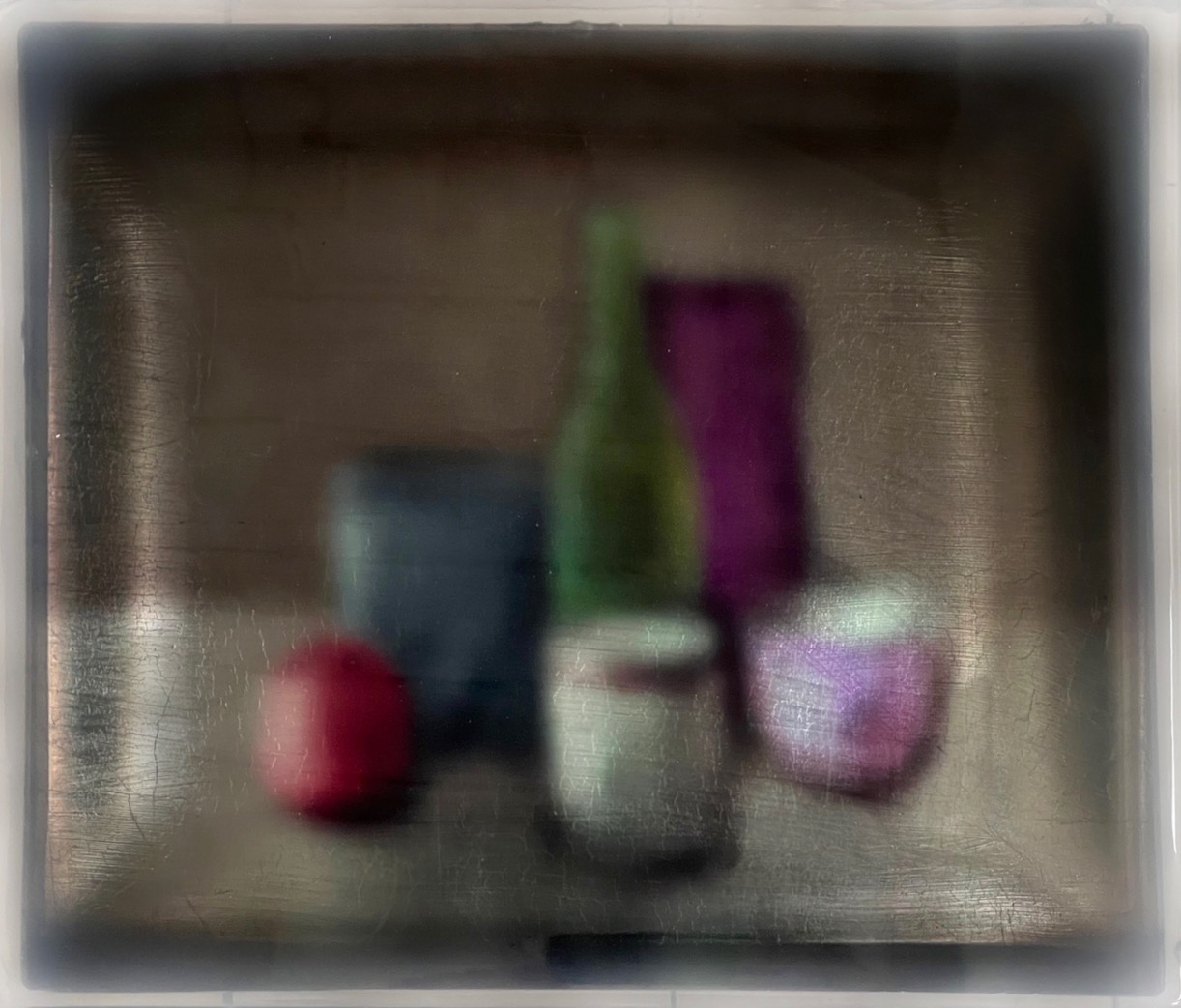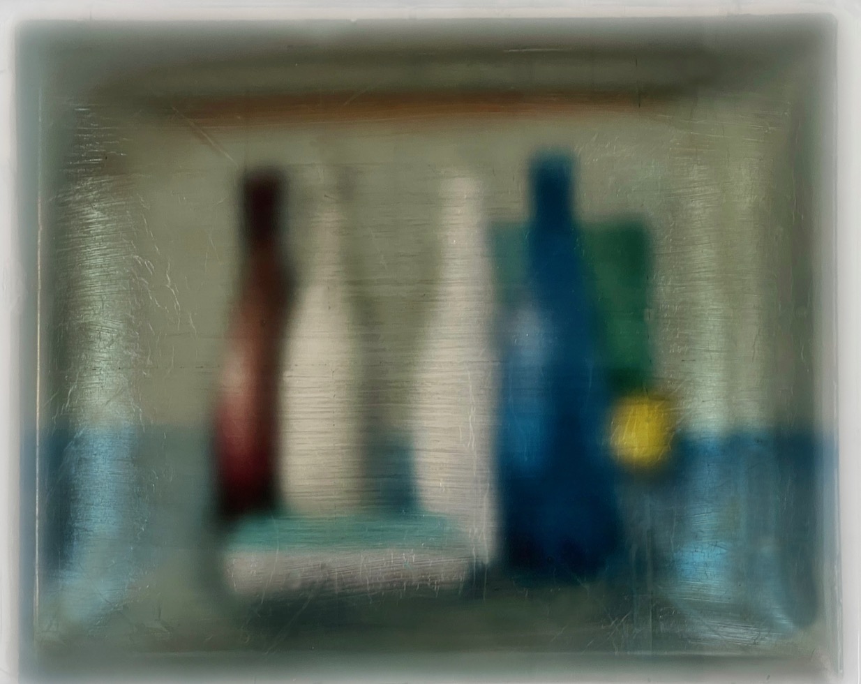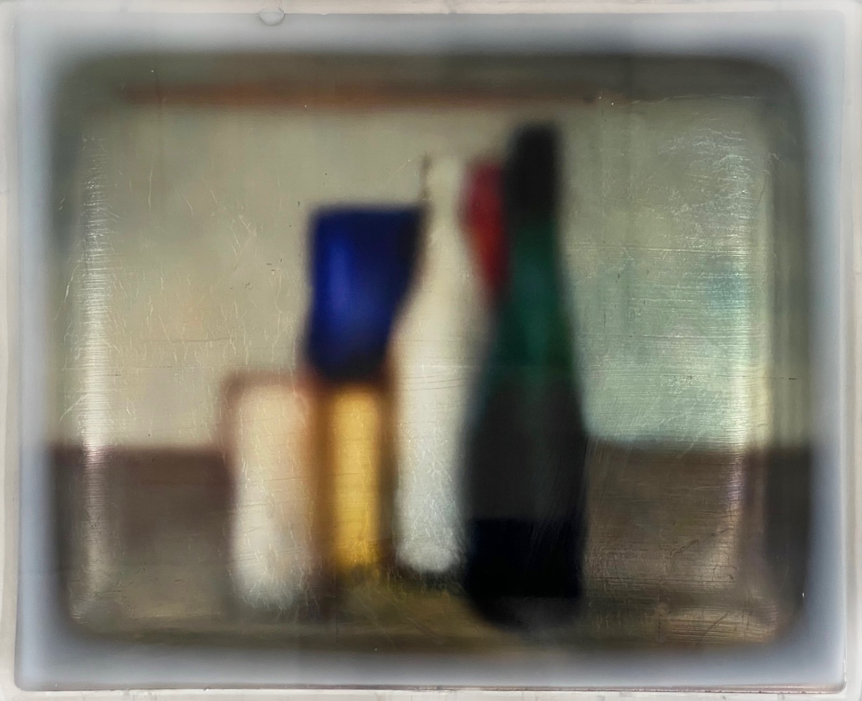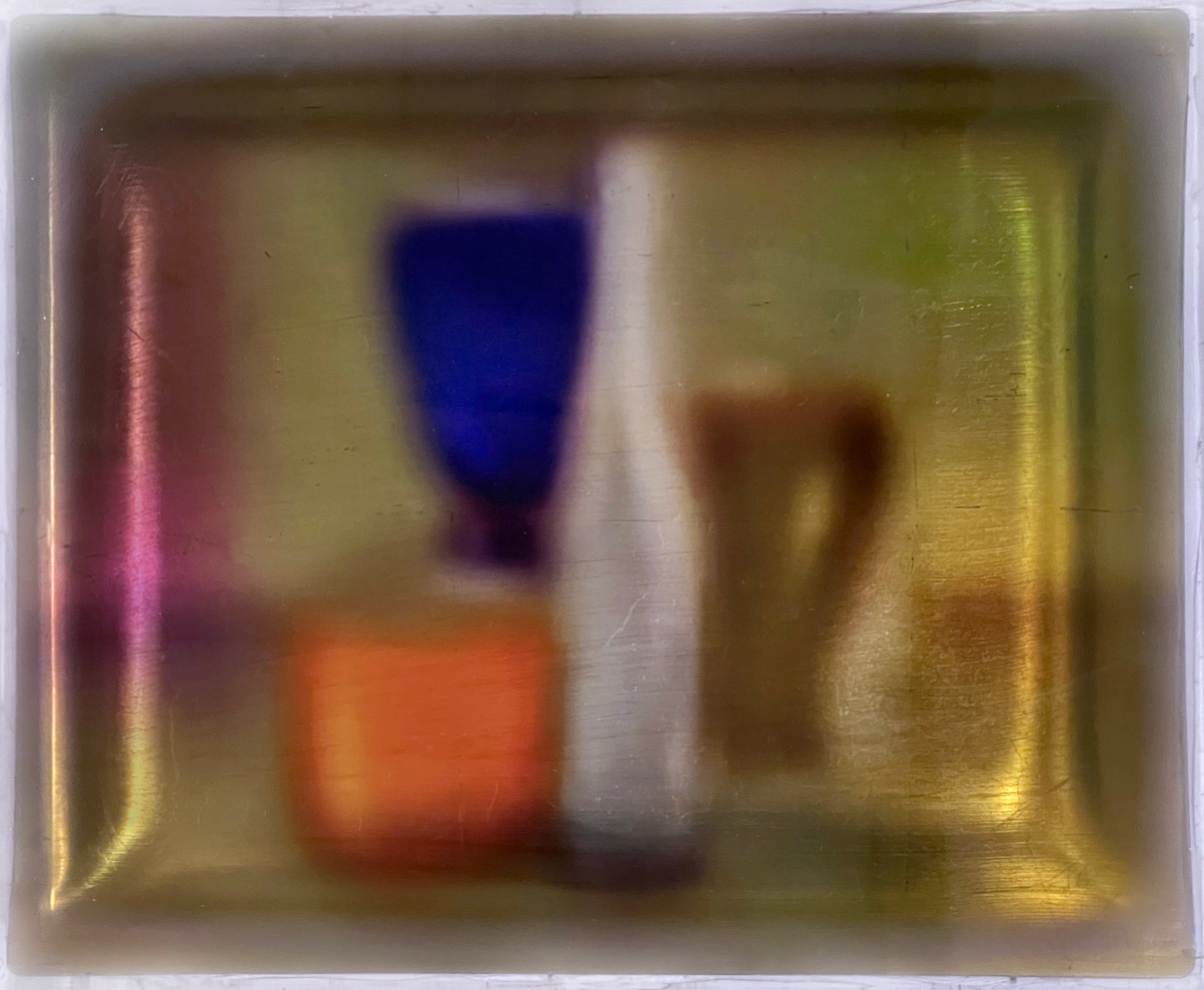 Die Gruppe der Stillleben auf dreidimensionalem Grund, der mit Blattgold und Silber versehen ist, strahlen etwas mystisches aus. Giovanni Castell lässt diese Bilder am Computer entstehen. Er arrangiert Gläser, Flaschen, Dosen und Schalen zu einer Komposition, die wie gemalt erscheint.
